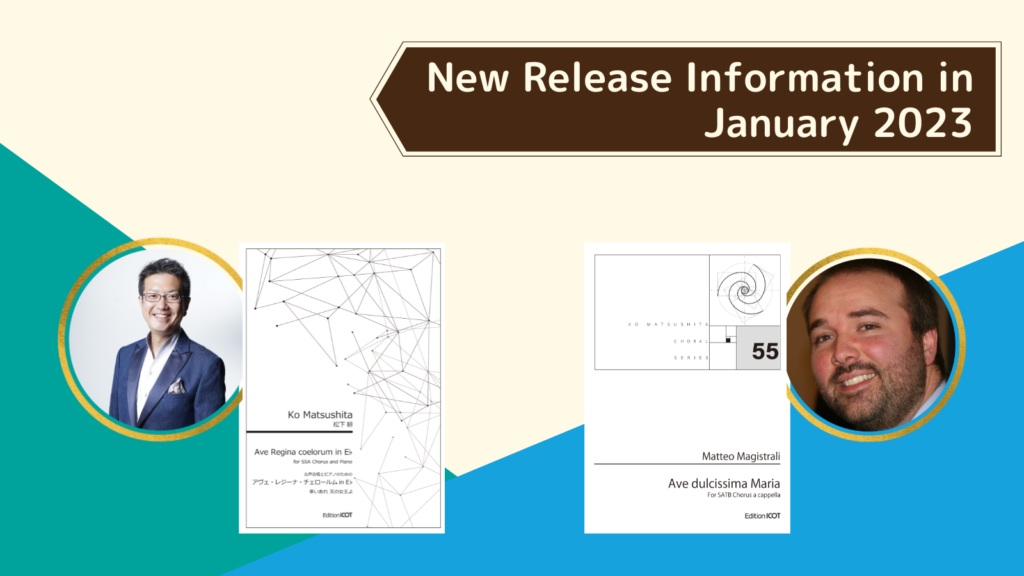 The first piece is “Ave Regina coelorum in E♭” by Ko Matsushita.As the composer says in his comment on the product page, it is a simple but beautiful work filled with gentle and tender melody. This is a piece that should be chosen by all people who love female chorus.