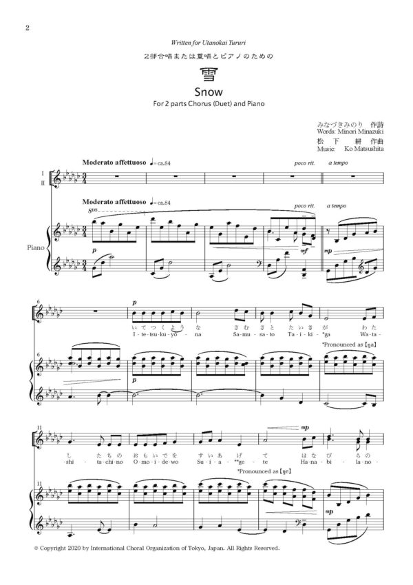 作曲者: 松下耕 作詩者: みなづきみのり 声部: SA 伴奏: ピアノ 言語: 日本語 演奏時間: 3’30” ページ数: 8