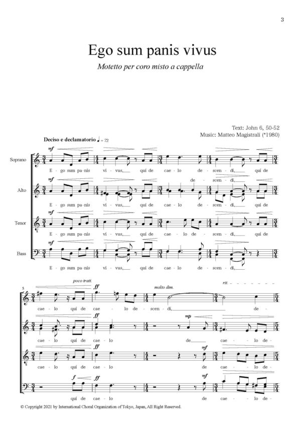 作曲者: Matteo Magistrali 声部: SATB 伴奏: アカペラ 言語: ラテン語/ドイツ語 演奏時間: 3’30” ページ数: 8