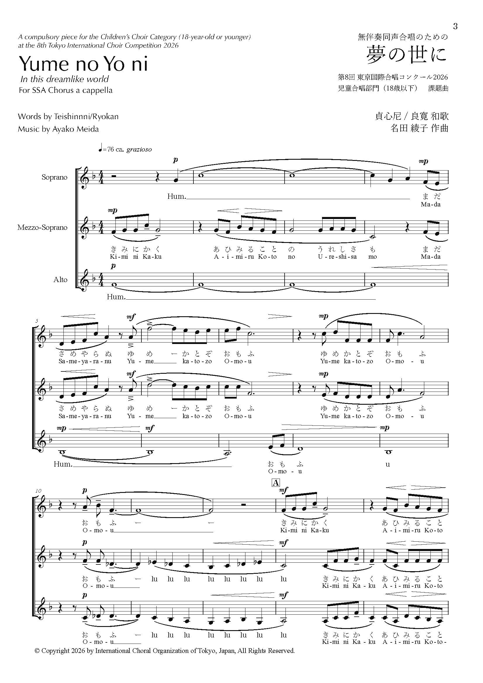 It is my sincere hope that this piece will be sung by people not only in Japan, but across many countries and regions around the world.