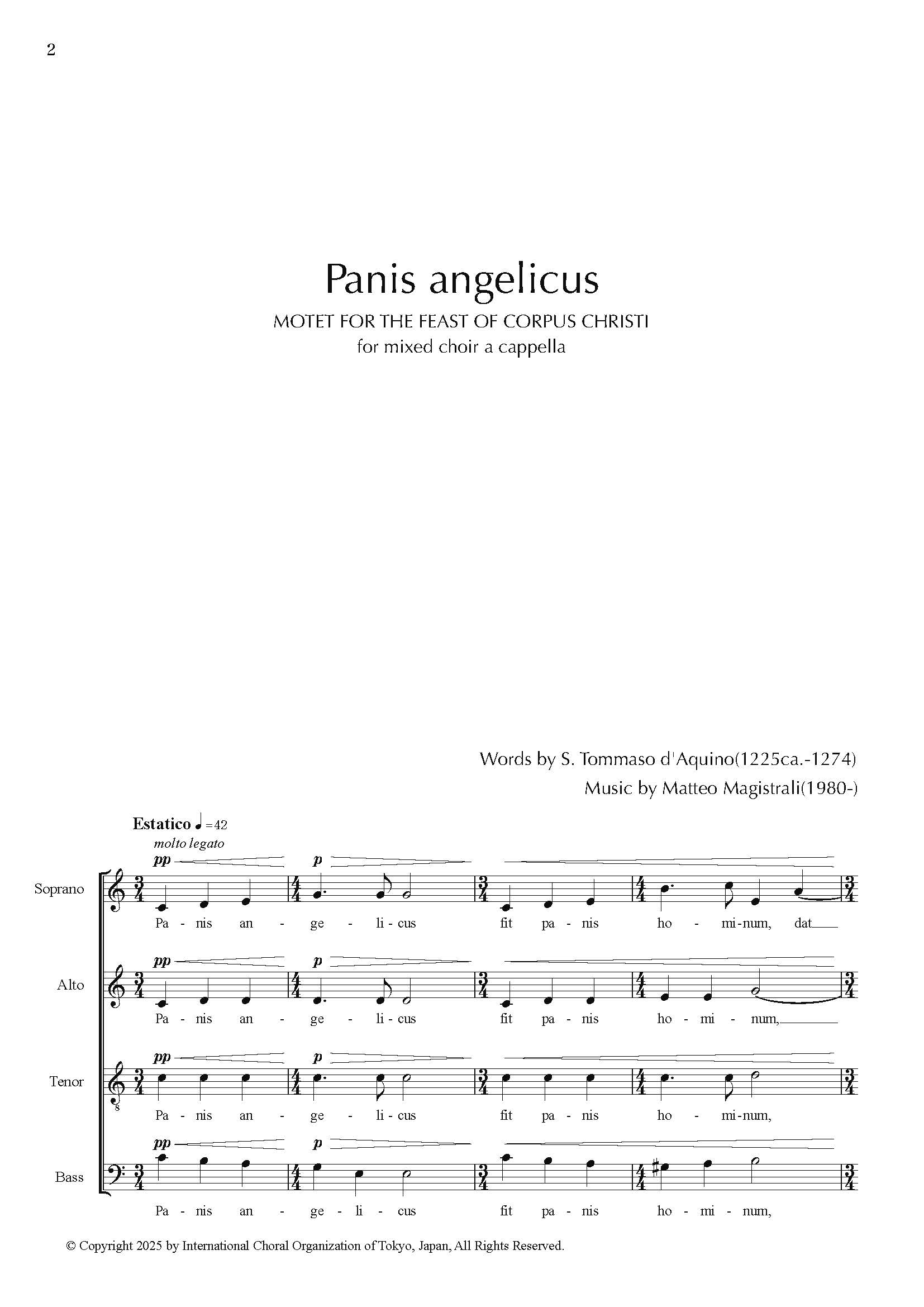 作曲者:Matteo Magistrali 声部: SATB 伴奏: アカペラ 言語: ラテン語 演奏時間: 3’20” ページ数: 8