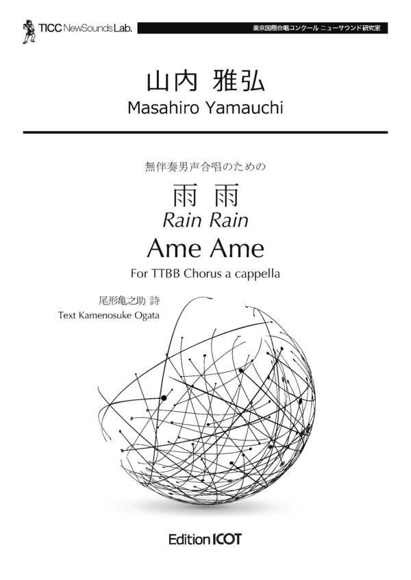 The “two-minute performance time” requirement led us to search for a short but impressive poem, and I found one by Kamenosuke Ogata. Most of the poem is made up of onomatopoeia, describing the sound of rain beating against the ground, and expressions such as “DO RA DO RA DO” are not considered rain sounds. Moreover, it is interesting to note that it is written in capital alphabet letters. The poem as a whole, including the part sung in the usual language of “Garasu no Hana (a glass flower),” has some unrealistic and mysterious sentiments. The majority of the music, naturally, is also onomatopoeic, and the music makes extensive use of perfect fourth interval, which have a rigid tonal feel to express this unique texture. I know there are many difficulties in pronunciation and pitch, but I hope you can overcome them and fully express the mysterious world of this poem.