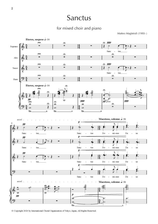 作曲者:Matteo Magistrali 声部:SATB 伴奏:ピアノ 言語:ラテン語 演奏時間:4’45” ページ数:12