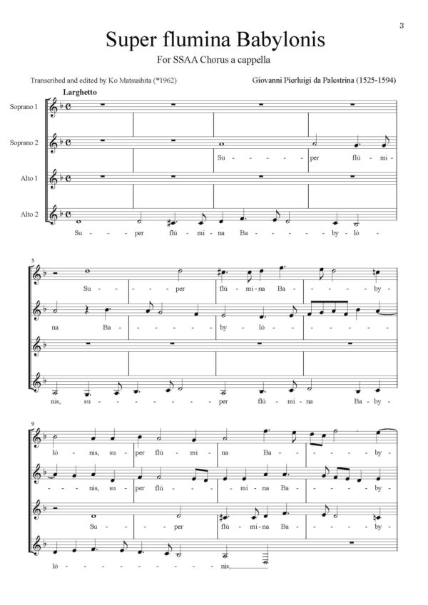 I would like to share one of Giovanni Pierluigi da Palestrina’s masterpieces, Super flumina Babylonis (By the River of Babylon).