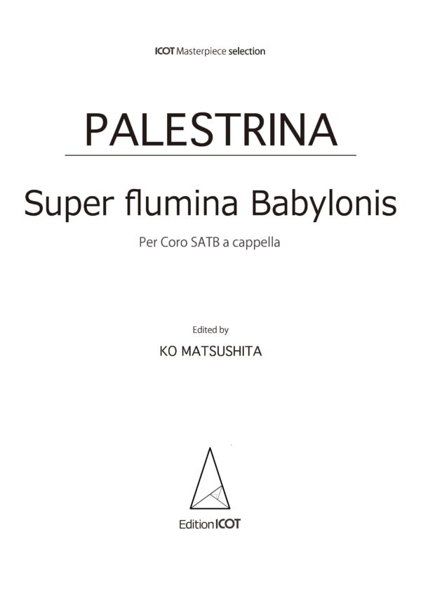 作曲者: G. P. da Palestrina 校訂者: 松下耕 声部: SATB 伴奏: アカペラ 言語: ラテン語 演奏時間: 3’30”-4’00” ページ数: 12