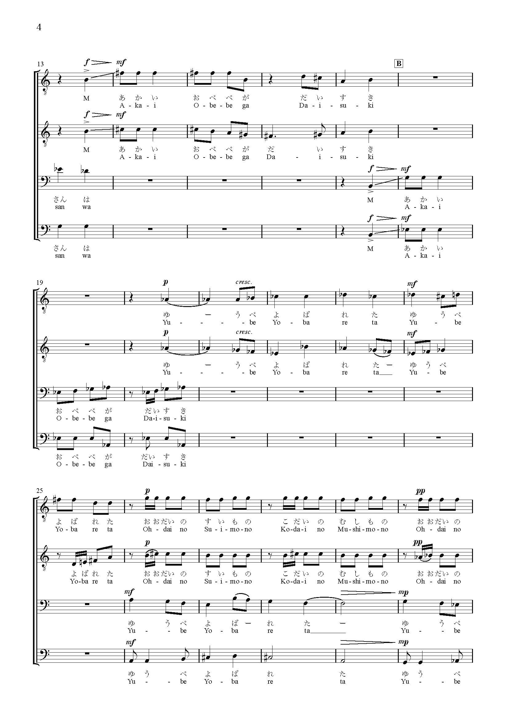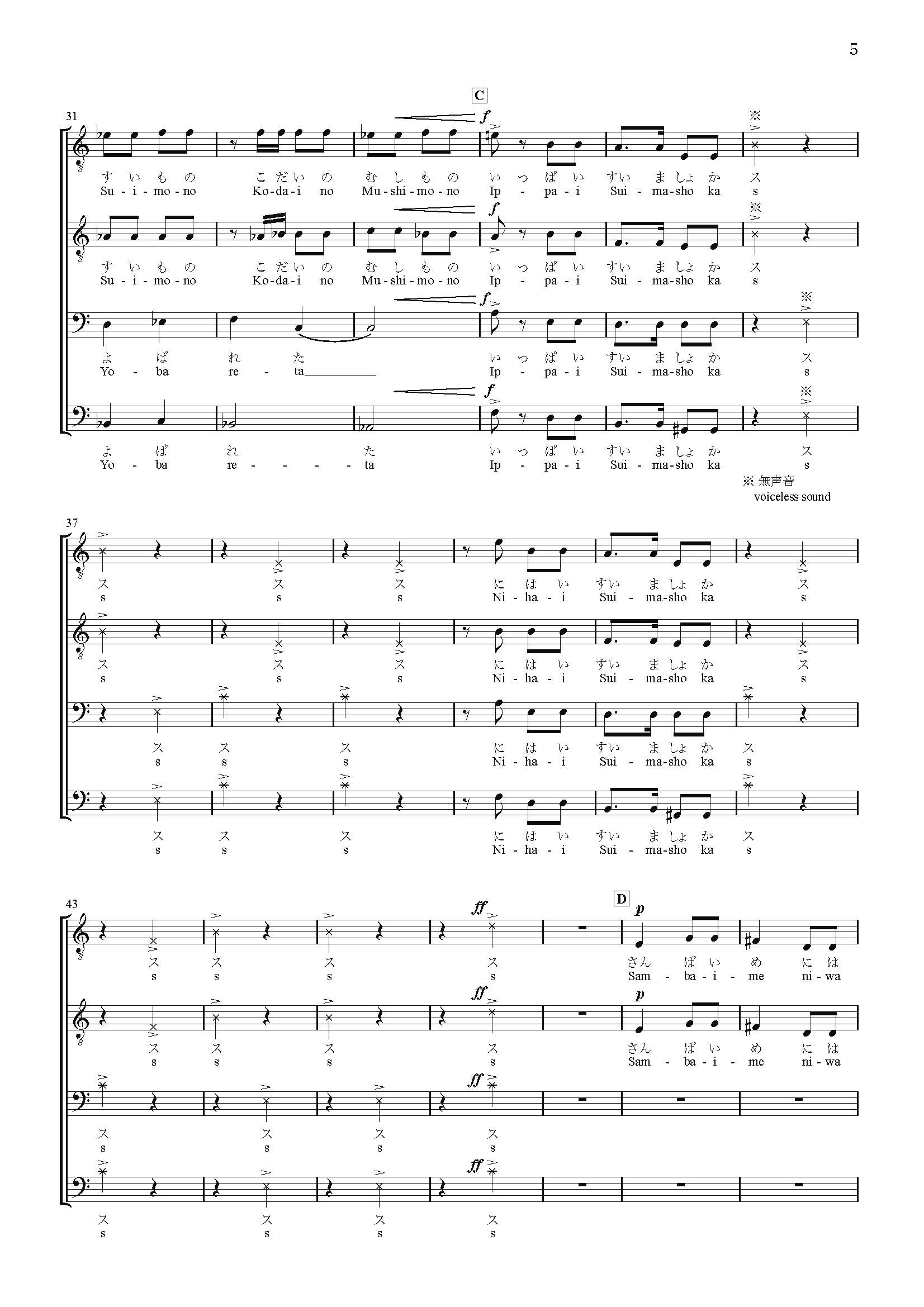 I composed “THE FOLKSONGS OF ORIENT I” in 1984. It was written for The Philharmonic Chorus of Tokyo, commissioned by its director, Nobuaki Tanaka. He apparently knew of my great interest in non-European music and that I also collected musical instruments. This series continued through “V.”